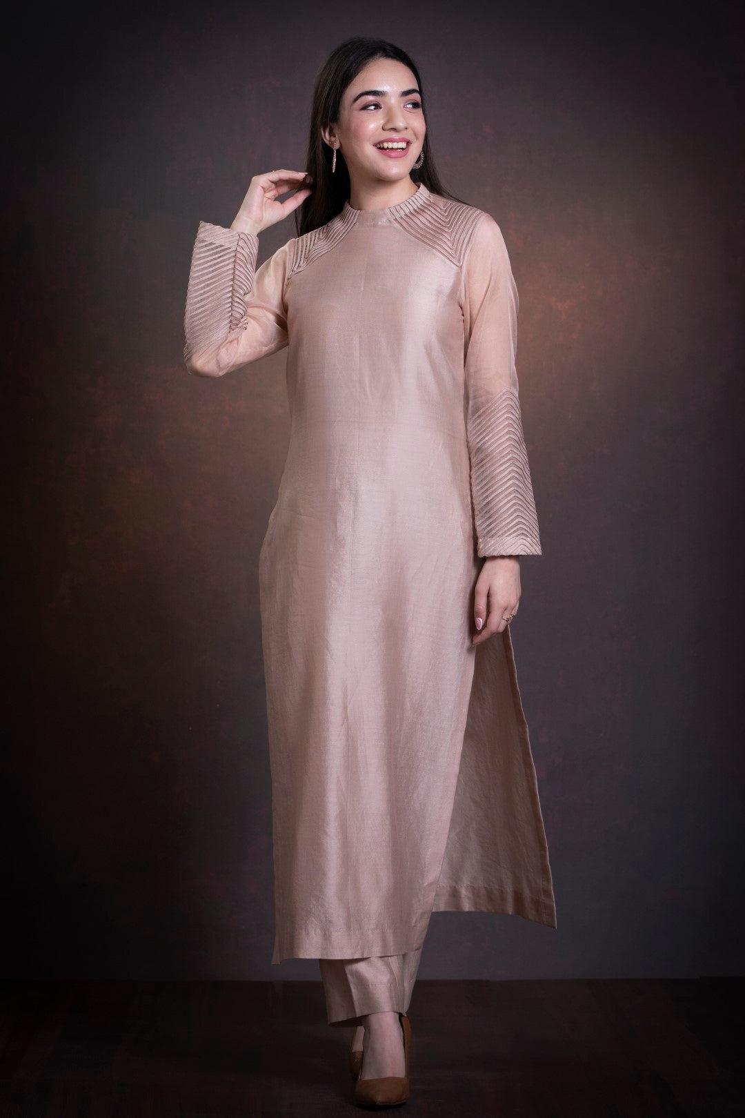 The measurements provided in the size guide are body measurements. The garment measurement will vary as per the garment style.